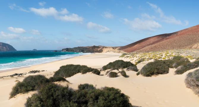 Sí, la historia de La Graciosa es la de algunas de sus gentes que, soportando el aislamiento, han conseguido lo improbable. Para todos los demás, queda la desnuda y fascinante belleza de sus paisajes, sus playas de arenas blancas y tranquilas aguas turquesa disputando el negro de la lava circundante. La playa La Francesa, junto a Caleta de Sebo; la de Montaña Amarilla, remota y onírica; la de Las Conchas, en la otra punta, solo para soñar, porque las simas que tiene a pocos metros de la orilla y las consiguientes grandes olas hacen peligroso el baño… Y todo eso a pie, en bicicleta o en taxi-jeep, porque ni un solo kilómetro de la isla está asfaltado.
