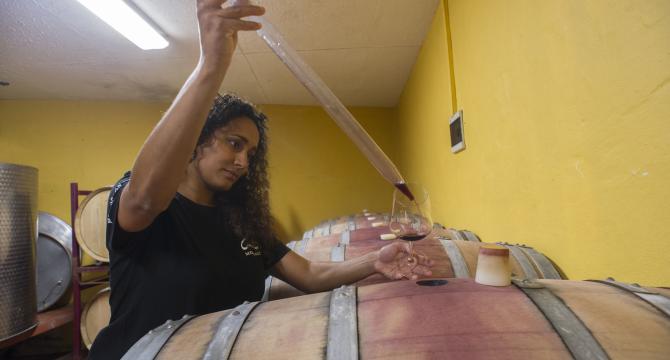 Otro vino de altura –no solo porque la bodega y los viñedos que la rodean están a 1.295 metros de altitud, sino por el nivel de excelencia alcanzado en sus elaboraciones después de unos inicios modestos– es Agala, de Bodegas Bentayga, en Gran Canaria. Aquí también se produjo un relevo generacional, pero ocurrió a la inversa: «Fue mi padre el que me convenció a mí», no puede evitar reír Sandra Armas. «Todo comenzó en 2008, era la época de poda, podía dedicarle tiempo y se despertó mi interés… ¡Ocasión que aprovechó rápidamente mi padre para pedírmelo!».
